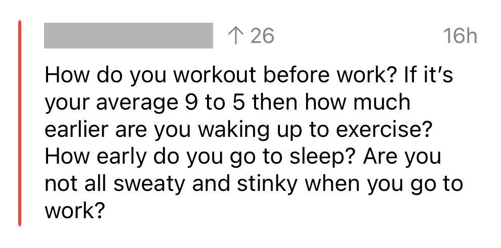The comments section sheds some light onto some of the hurdles people face when it comes to working out. Check out the screenshots below: